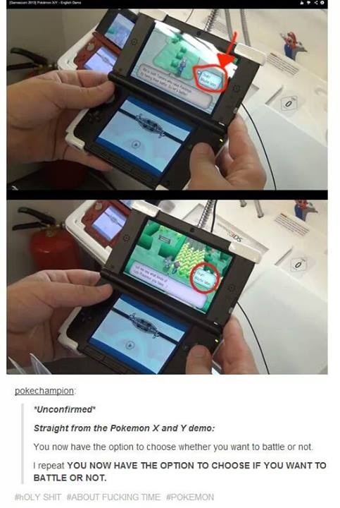 Boatos de que no Pokémon X e Y haverá a opção de escolher se quer ou não lutar com aqueles fdps que te desafiam, apenas fucking 17 anos para fazerem uma parada tão útil! PQP QUE EMOÇÃO!!