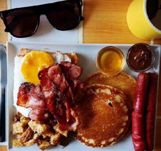 A cafeteria tem no cardápio panquecas, cupcakes, bolos, bacons pra você rasgar na mão e fazer o número da sua idade no seu aniversário e ovos. Não tem metanfetamina, é lógico, e muito menos chá com ricina. Confira as fotos: