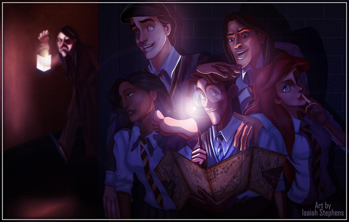 Imagina que louco seria se os personagens da Disney fossem para Hogwarts? O artista, muito talentoso por sinal, Isaiah Stephens criou esse fan art onde alguns personagens da Disney aparecem como estudantes e professores no universo de Harry Potter. Confira: